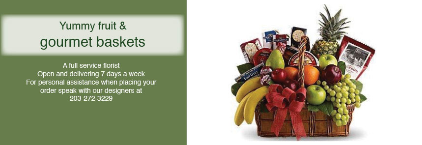 yummy fruit and gourmet baskets.